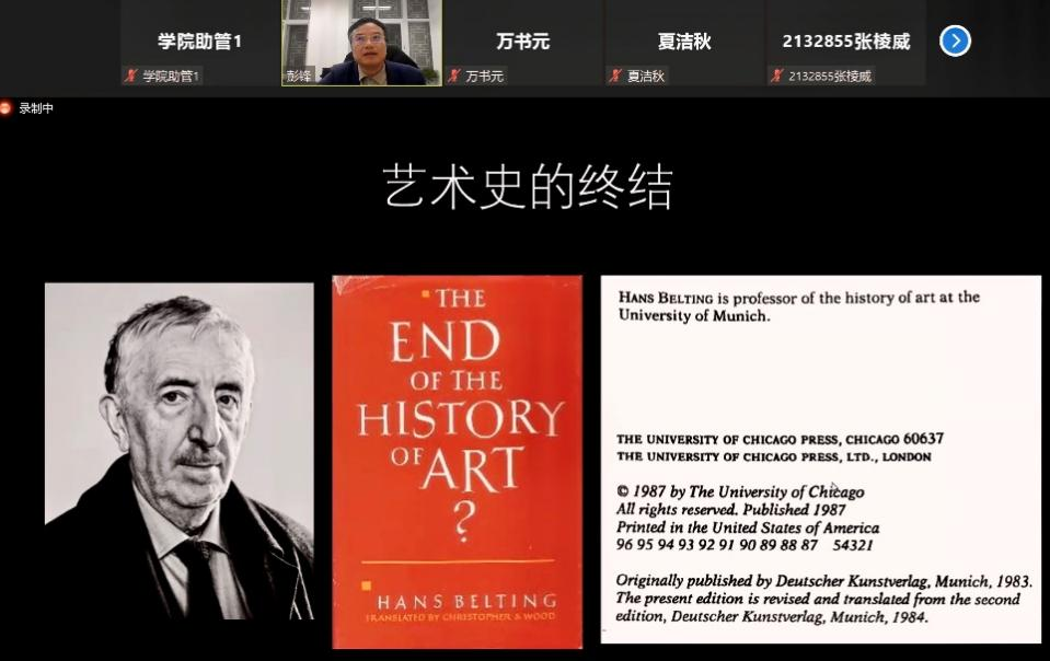 彭锋教授的讲座主题为《艺术史的转向:从艺术品到艺术家》。进入二十世纪以来,艺术品与非艺术品之间的关系日益模糊,彭锋教授从“艺术史就是艺术作品的历史”这一观点切入,阐述了阿瑟·丹托提出的“艺术史的终结”这一概念。