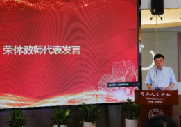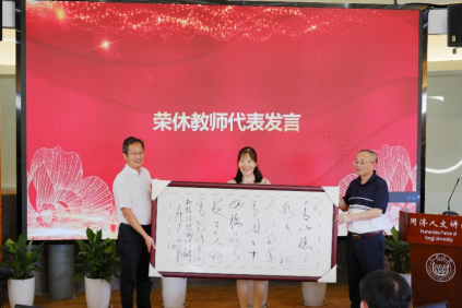荣休教师代表万燕、张文江、郭世佑教授和宋澜老师依次发言。万燕教授向公司赠送了自己珍藏的韩德彩将军的书法作品。她追忆自己在同济bevictor伟德任教二十年来不凡而温情的岁月,是公司的关怀和人文之美与她的人生相伴前行。张文江教授回顾了自己的学术生涯与人类历史同呼吸的四个关键时刻,他感谢任教期间bevictor伟德营造的友爱氛围,谦逊地表示要和各位后辈携手朝中国古典学术的更高远处迈进。郭世佑教授历数从教以来的难忘经历,鼓励青年教师们“欲为师,永为生”,表示自己在公司任教的十年“摘取了一串闪亮的谷穗”。宋澜老师回望自己在公司工作二十年的生涯,她衷心感谢各位领导和老师对她行政工作的支持,并期待为公司的发展做出更多贡献。