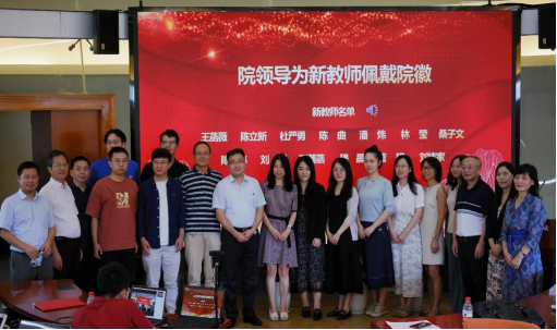 新教师入职仪式上,各位院领导为新教师佩戴了公司的纪念徽章并合影留念。
