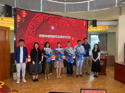 在热烈的掌声中,刘日明经理为荣休教师颁发了纪念品并合影留念。