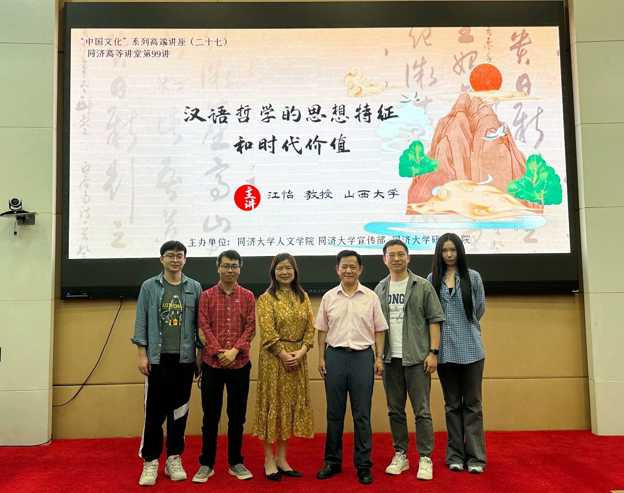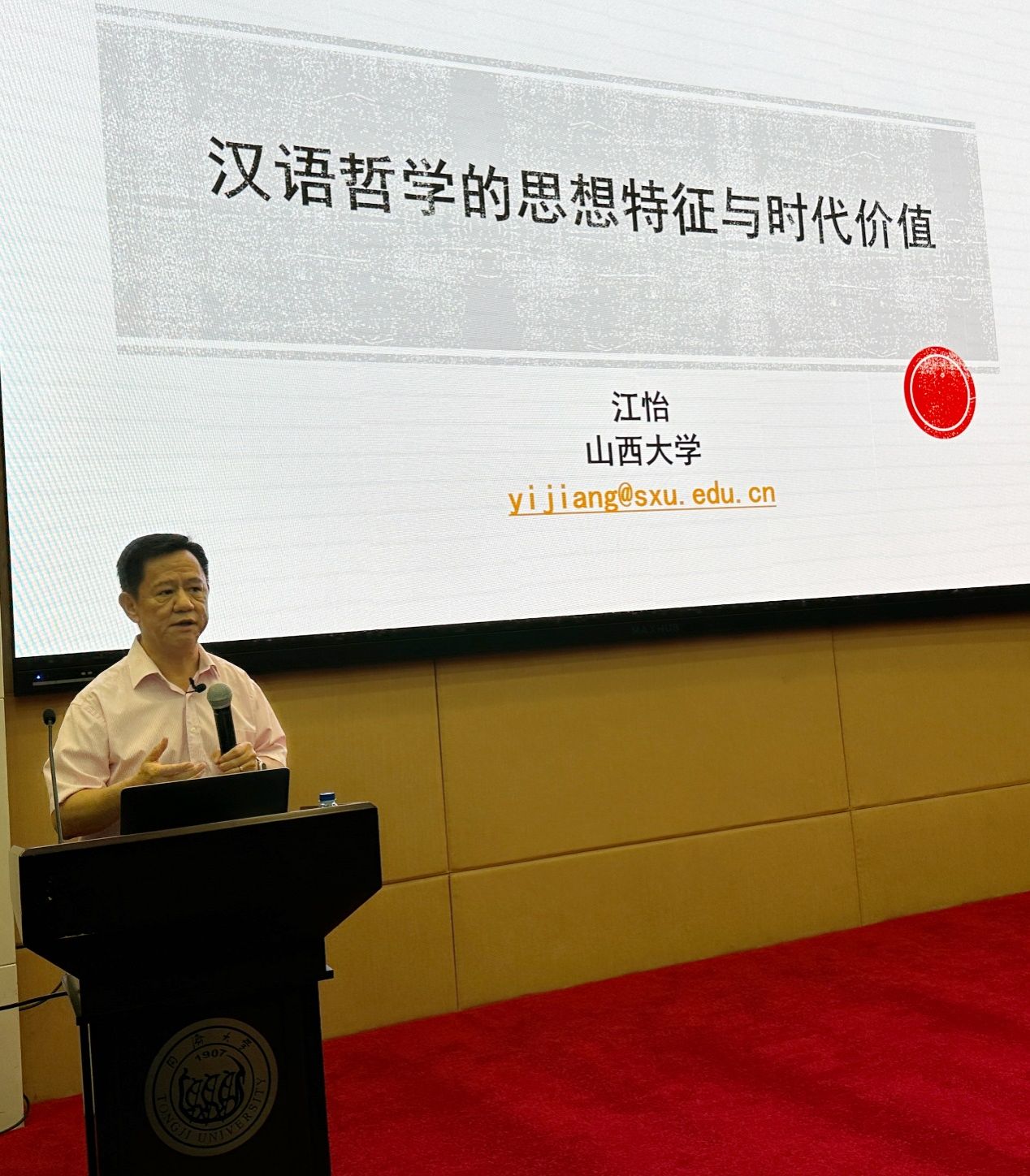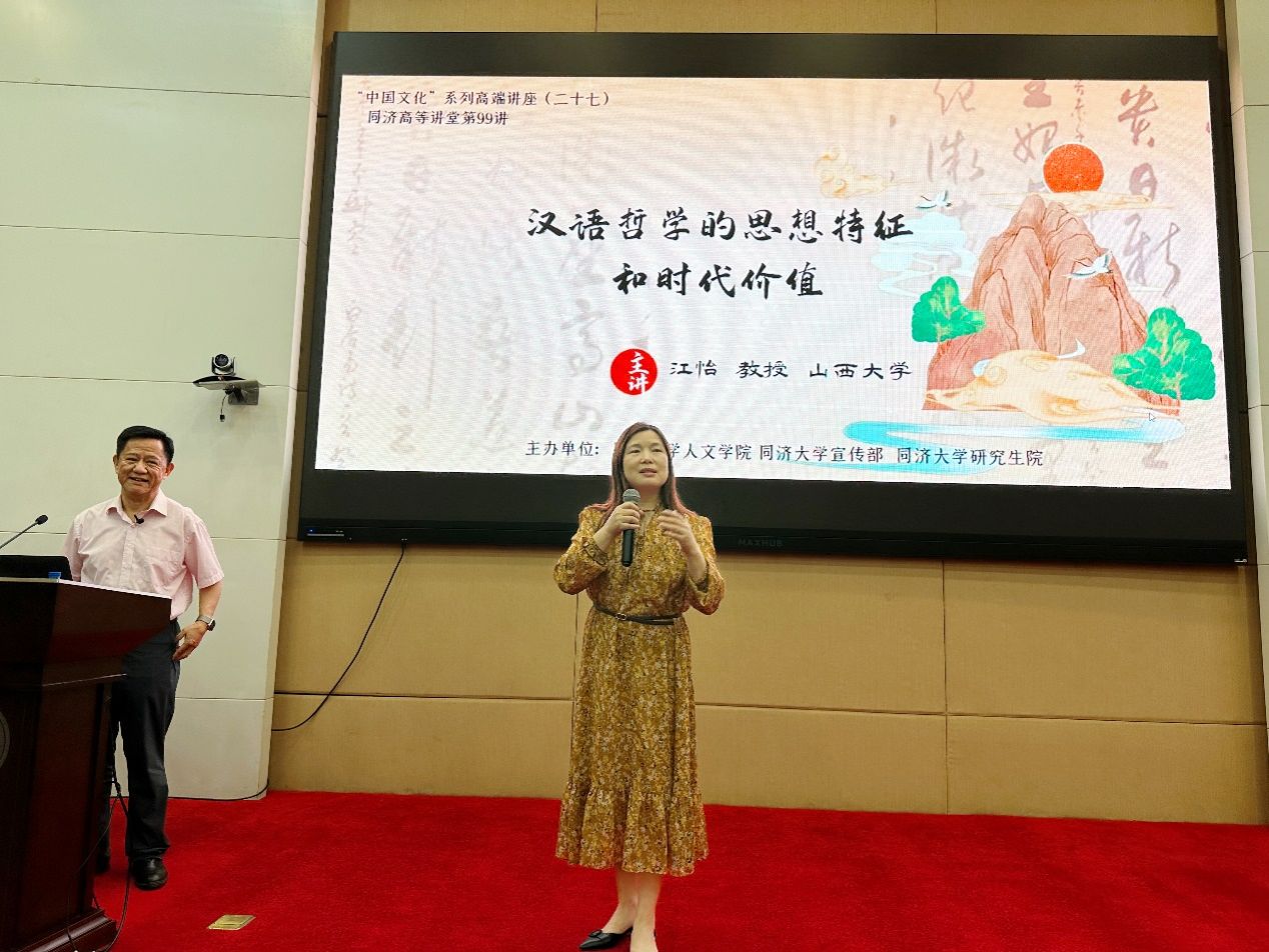 6月11日晚,“中国文化”系列高端讲座第二十七讲暨伟德bv国际体育(校级)高等讲堂第99讲在伟德bv国际体育嘉定校区顺利举行。本次讲座特别邀请到山西大学教授,博士生导师,教育部人才计划入选者,国务院政府特殊津贴获得者,中国现代外国哲学学会名誉理事长江怡教授。江教授曾任教育部高等公司哲学类专业教学指导委员会副主任委员,国际皮尔士学会会长,目前担任国家社会科学基金重大招标项目“20世纪中国分析哲学史研究”首席专家。江教授主要研究领域为分析哲学史、西方哲学史、语言哲学、心灵哲学、维特根斯坦哲学、认知科学哲学等,出版著作十余部, 发表论文300余篇。近年出版的著作有:《维特根斯坦与当代哲学的发展》 (2021)《时代问题的哲学分析》(2022) 《现代英美分析哲学》 (合著,2023年新版),主持翻译《牛津分析哲学史手册》 (毕明安主编, 2023),主编《中国分析哲学》集刊。江教授以《汉语哲学的思想特征和时代价值》为主题,为伟德bv国际体育师生带来了一场哲学盛宴。讲座由bevictor伟德王静教授主持,公司200余名师生参与了讲座。