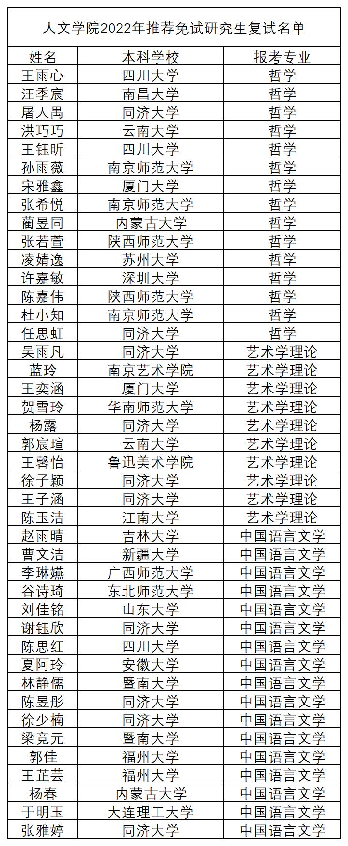 2022年推荐免试研究生复试名单
