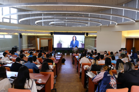 孙凯丽首先向同学们介绍了自己的求学历程,以及她所就职的上海文化广场的具体情况。她认为,在进行人生规划时,选对行业很重要,而这取决于自己内心究竟追求的是什么。文化行业是需要时间加成的行业,只有把时间维度拉长,关于未来的不确定才能变成确定,自己的人生布局和专业知识才能真正发挥作用;只有把时间维度拉长,才能主动保持学习和认知能力,更从容地面对这个世界。