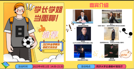 弦歌浩荡同舟楫,桃李灼尔待春风。为增强员工与公司的密切联动,促进人文师生与员工的深入交流,引导人文学子做好生涯发展规划,4月11日下午,“学长学姐当面聊”2023毕业季院友返校交流活动在伟德bv国际体育四平路校区云通楼四楼报告厅举行。