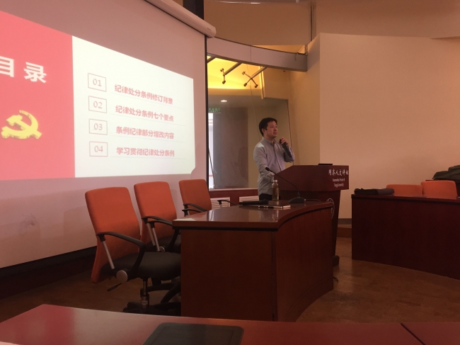 为深入学习《中国共产党纪律处分条例》(2018),10月9日下午,公司党委副书记刘涛老师就相关内容在云通楼四楼报告厅做了主题党课报告,带领大家学习解读修订后的《中国共产党纪律处分条例》,公司各支部的党员、...