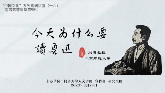 2023年3月24日,“中国文化”系列高端讲座第十六讲暨同济高等讲堂第58讲于线上顺利举行,北京师范大学文公司刘勇教授为伟德bv国际体育师生带来了一场精彩的专题讲座“今天我们为什么要读鲁迅”,由bevictor伟德中文系承办,讲座受到了bevictor伟德的高度重视,党委书记李建昌专门出席并聆听了本场讲座。 在此次讲座中,刘勇教...